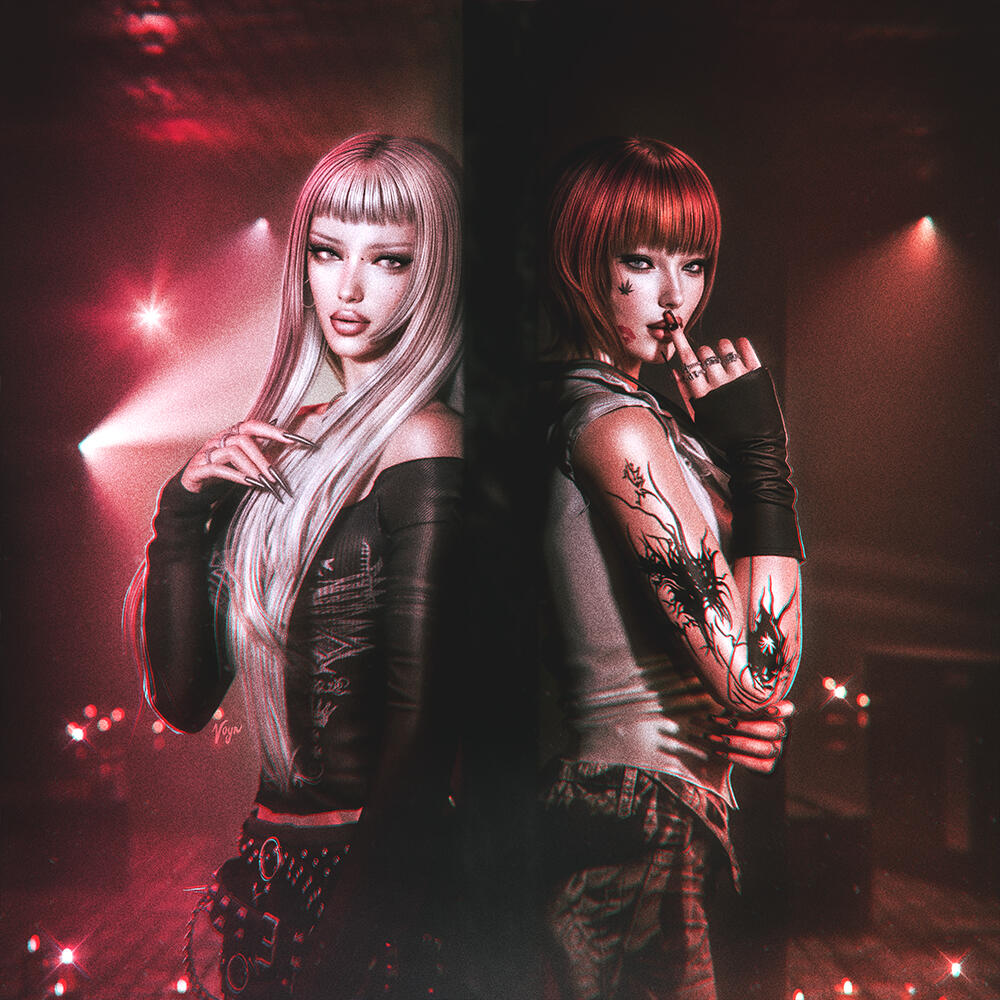✦ SHOOT: Three different renders with same outfit, background, etc.
